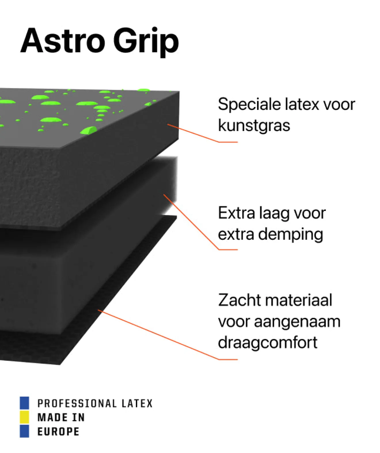 Ons 4mm Astro Grip latex is speciaal ontwikkeld voor harde, slijtvaste oppervlakken zoals kunstgras en harde velden. De groene stippen in de latex zien er sterk uit en versterken tegelijkertijd de gehele structuur van de foam. - Vaste bandage, maximale stabiliteit.